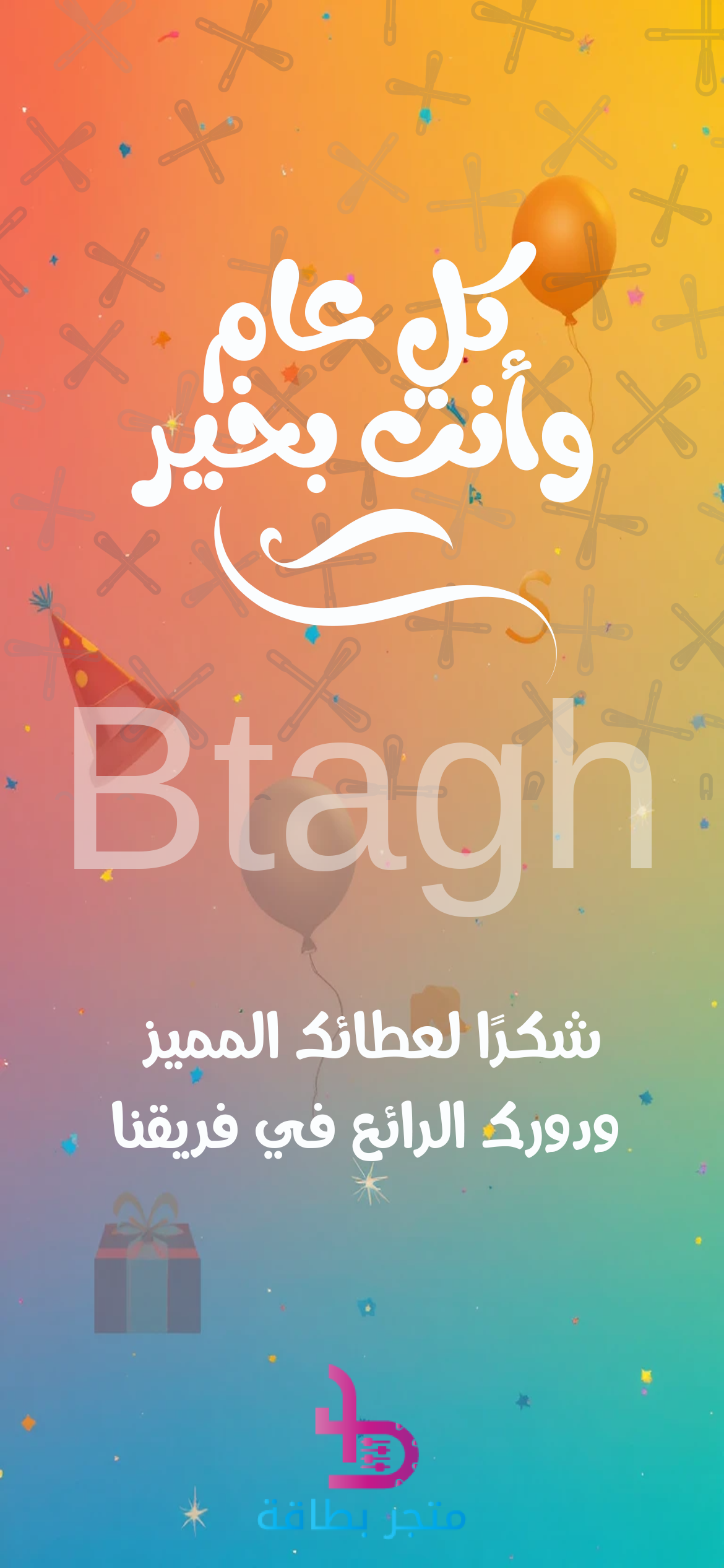 - تصميم مبهج وزاهي: ألوان متدرجة ومؤثرات احتفالية.