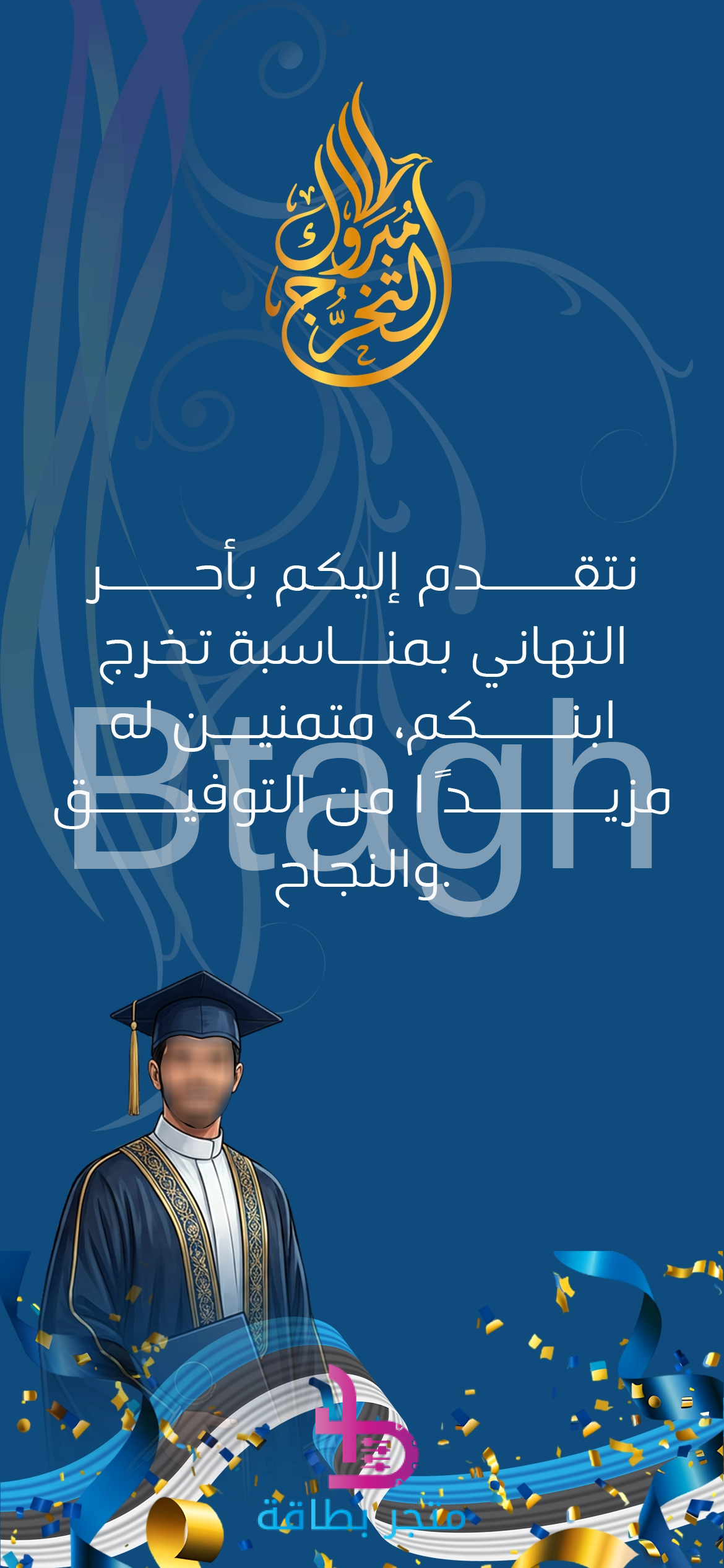 - تصميم احتفالي: يجمع بين الخط العربي الفاخر ورسم الخريج.