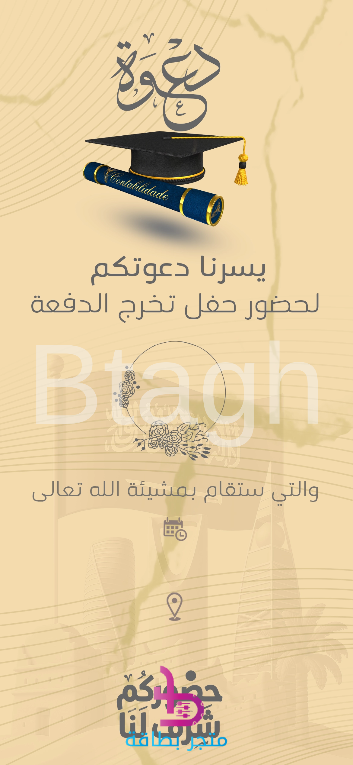 بطاقة دعوة حفل تخرج الدفعة خط عربي