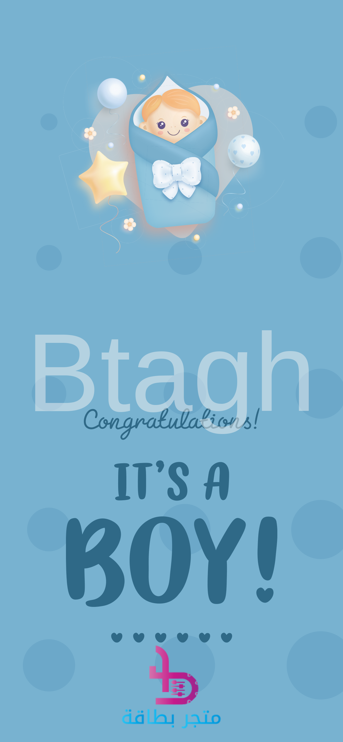 - رسالة إنجليزية: “Congratulations! IT’S A BOY!” مناسبة للجمهور الدولي.
